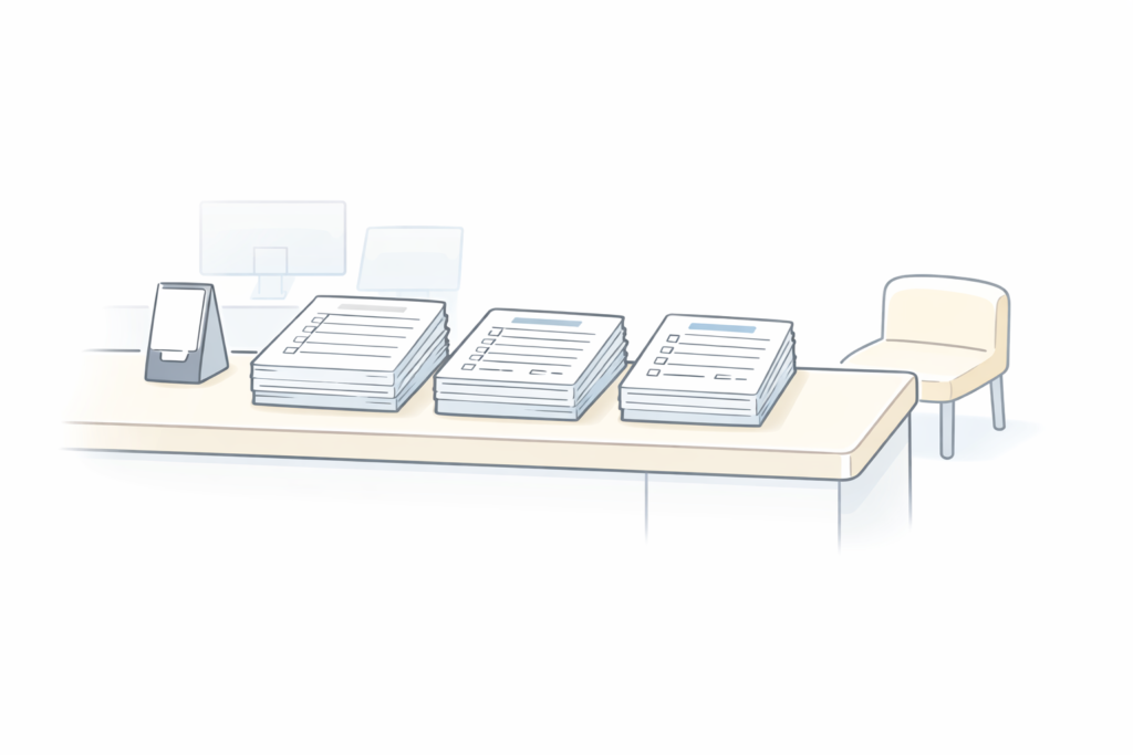 役所の窓口で、同じ内容を何度も書かされる。別の用紙でもう一度、似た項目を埋める。待ち時間も長い。