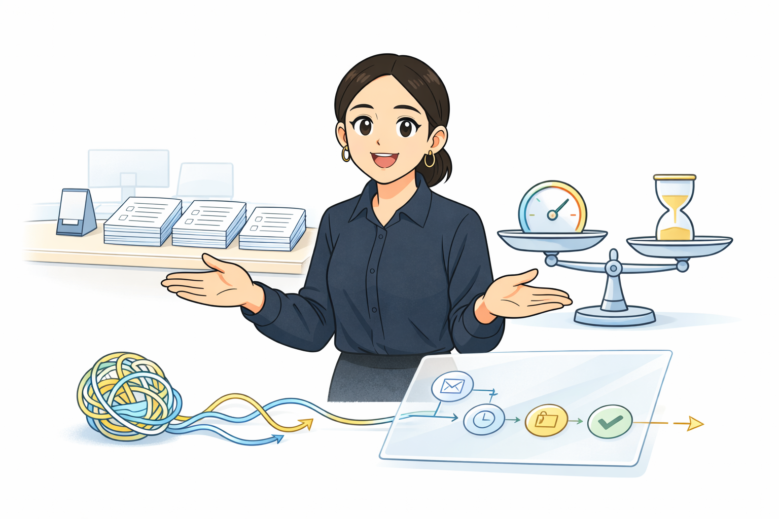 体感として、あれは町内会の回覧板に近い。順番は整っているのに、どこかで止まる。回すこと自体が目的になり、手間だけが積み上がる。もし回覧板を“DXする”なら、まず「同じことを二度書かない」から始めたい——そんな種類の不便だ。